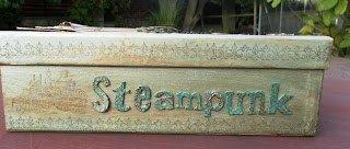 The sides have been stamped, and the 'steampunk' grungeboard letters have been painted and stamped.